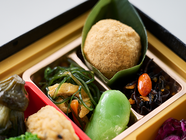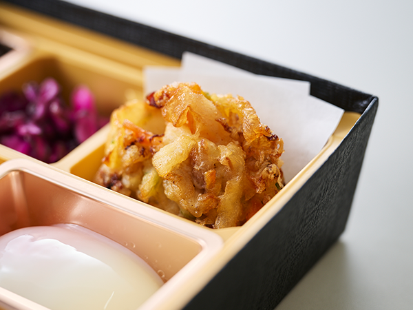 口取り ひじき煮 細切昆布煮 笹豆揚物 烏賊軟骨かき揚げ 天汁