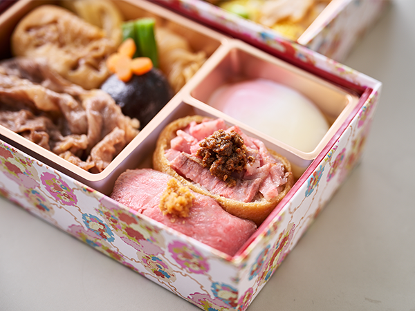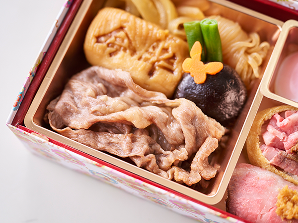 黒毛和牛すき焼 丁字麩 温泉玉子 すき焼タレ口取り ほうれん草玉子焼 笹豆 ミニトマト